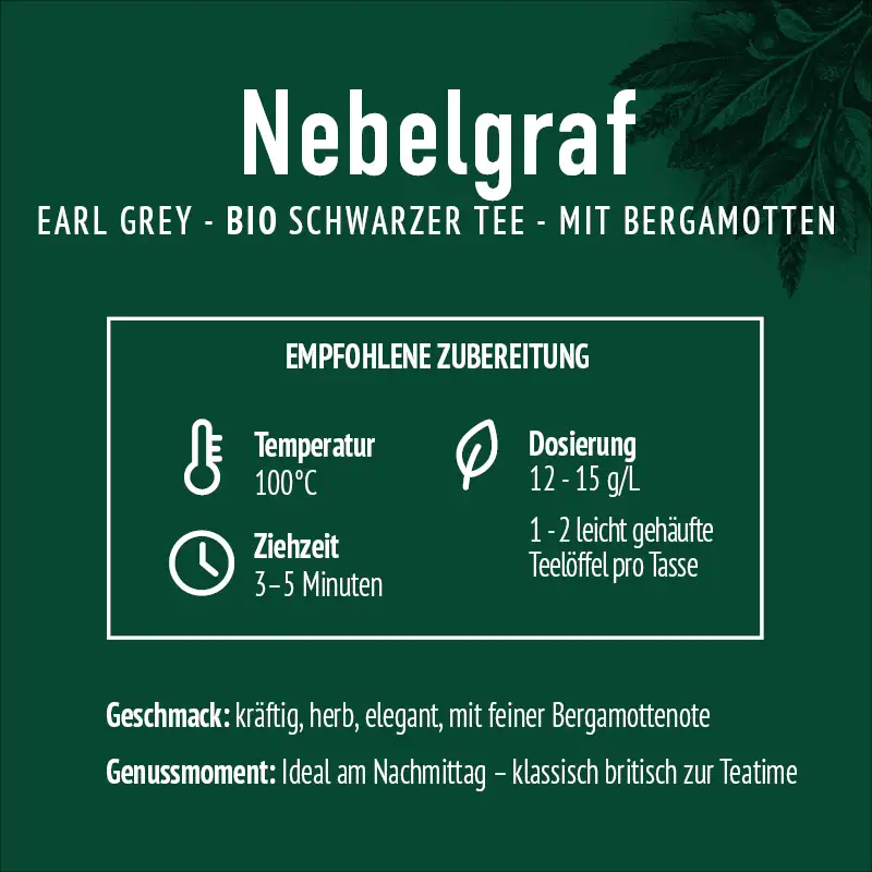 In den nebeligen Hรถhen Indiens geboren, entfaltet dieser Earl Grey im Schwarzwald seine geheimnisvolle Aura.