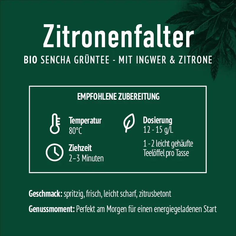 Zitronenfalter – Bio Sencha Grüntee mit Ingwer & Zitrone 80g